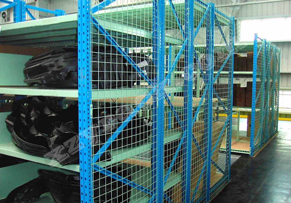 4、減震器架:分為橫放減震器和豎放減震器。橫放減震器是標準中型貨架,豎放減震器是兩層層板,兩層固定網片形式,網片間距100×100。