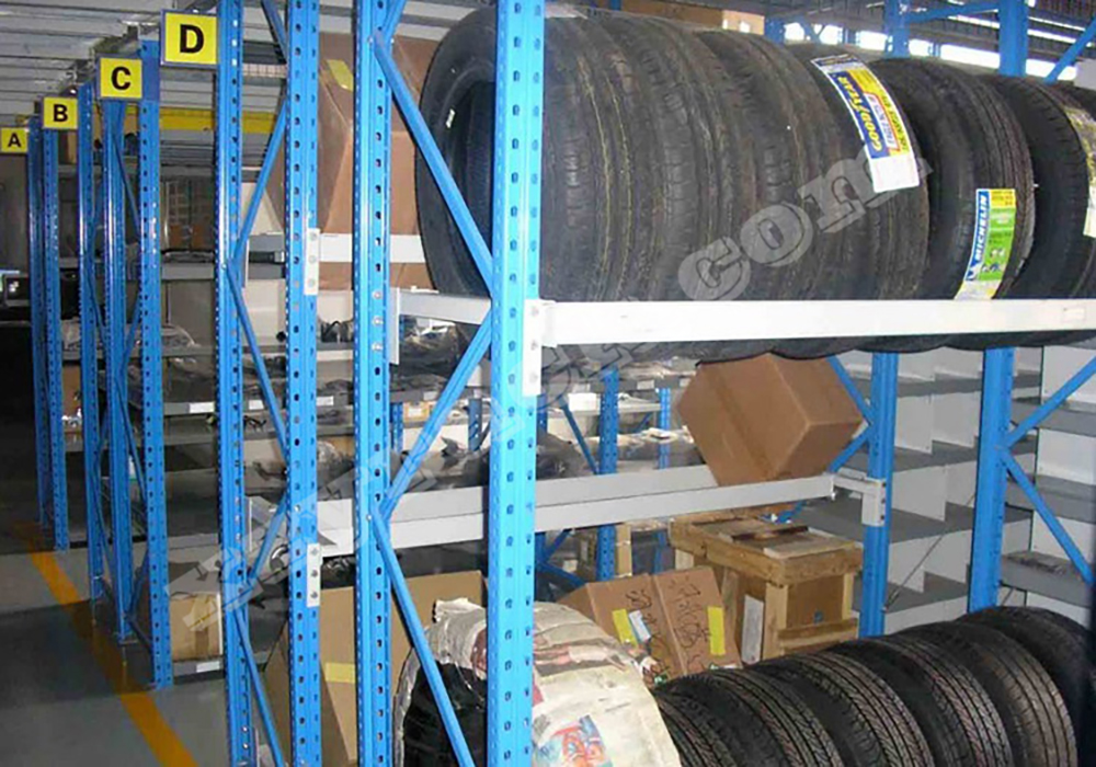 1、輪胎、輪圈架:即將中型貨架的層板取出,輪胎、輪圈直接置于橫梁之上。